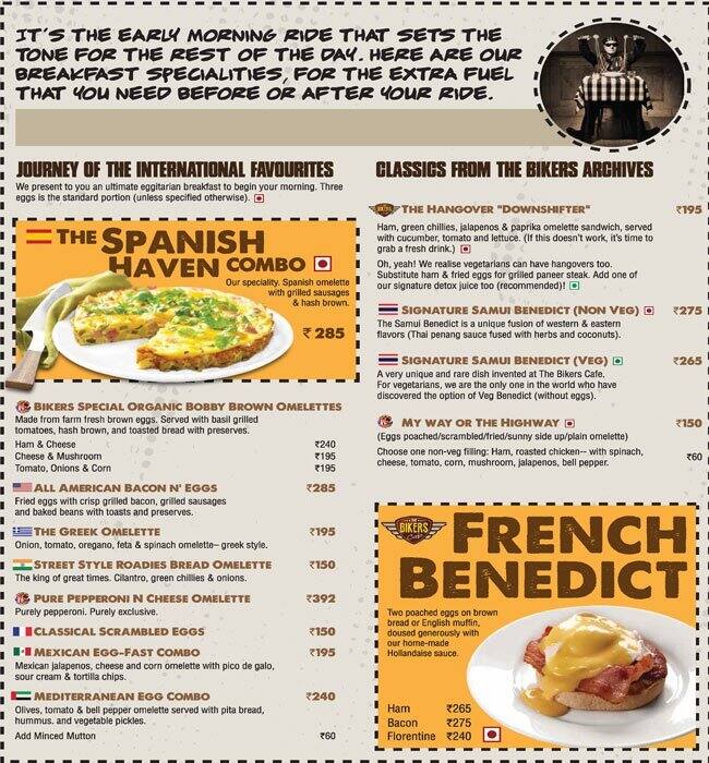 Bikers Cafe Menu Kolkata