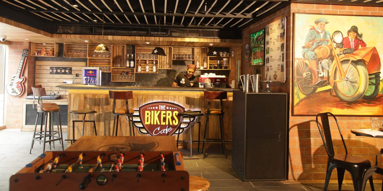 Check out menu photos reviews of the bikers cafe elgin road kolkata and also get 20 discount 20 cashback on your bill when you book a table through dineout. See 135 unbiased reviews of the bikers cafe rated 4 of 5 on tripadvisor and ranked 50 of 4 582 restaurants in kolkata. It s like your go to cafe where you could be a regular. Spread over 2 500 sq ft this 70 cover biker themed café is done in wood wrought iron and leather for the sturdy look the tables comes imprinted with logos of motorcycle giants such as harley davidson the walls are adorned with biker paraphernalia and world war ii helmets.
